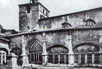 1910: Claustro de la Catedral desde el sureste. A la izquierda, el Palacio Episcopal neogótico desaparecido en 1941
