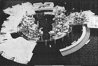 La ciudad marina nace como fórmula descongestionadota de la alta densidad existente en Japón. Aparece como una ciudad flotante formada por dos anillos: uno interior destinado a viviendas y otro exterior dónde se albergarán los centros de producción. Presenta autosuficiencia energética debido a un perímetro de captadores solares y una planta de aprovechamiento de la energía de las mareas. Las torres de viviendas están pensadas para una capacidad de 1250 habitantes. El número de células albergadas en las torres aumentará o disminuirá según las necesidades de la comunidad y cada una de ellas podrá ser intercambiada por otra distinta según las exigencias futuras de la sociedad que la habite.![1960 - 1971 CIUDADES MARINAS [Kiyonori Kikutake] 1960 - 1971 CIUDADES MARINAS [Kiyonori Kikutake]](http://m1.paperblog.com/i/38/382906/1960-1971-ciudades-marinas-kiyonori-kikutake-L-KUyYG2.jpeg)
