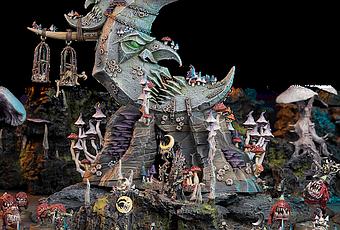 Bad Moon Loonshrine: 45 euros por un set de escenografía de 32 piezas de plástico. Parece ser que algunos ejércitos van a tener este tipo de elementos de escenografía como parte de los mismos ya que tienen reglas y les dan beneficios. En cuanto a la figura en si, la verdad es que no esta mal, aunque igual de precio algo elevado sobre todo a juzgar por su tamaño que tiene. Lo compensa el nivel de detalle con todo esos hongos y setas de diferentes formas.