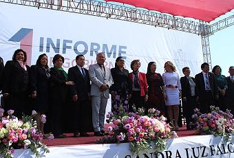 En sesión solemne de cabildo y ante más de 10 mil texcocanos, la Presidenta Municipal Sandra Luz Falcón Venegas, rindió su 1er Informe de Gobierno, cumpliendo así con el mandato constitucional de entregar cuentas del Ayuntamiento 2019-2021.Como testigos de la entrega del 1er Informe de gobierno asistieron el Senador de la República por el Estado de México Higinio Martínez Miranda, la Senadora de la República Martha Guerrero Hernández, los Diputados Federales Karla Yuritzi Almazán Burgos y Alejandro Viedma Velázquez, el Presidente de la Junta de Coordinación Política del Congreso del Estado de México Maurilio Hernández González, en representación del gobernador del Estado de México Alfredo del Mazo Maza, acudió la Secretaria de Cultura Marcela González Salas, así como expresidentes municipales de Texcoco, alcaldes de los municipios de la zona oriente y legisladores.En un acto solemne de cabildo, Sandra Luz Falcón Venegas entregó su informe, destacando las obras en las 56 comunidades de Texcoco, así como la gestión que ha permitido que los programas sociales estén presentes en todos los sectores de la población.La Presidenta Municipal, agradeció a cabildo por el apoyo brindado, envió un saludo a Nazario Gutiérrez por la pérdida de su padre, destacó que hoy se rinden cuentas seguridad que su gobierno tiene claridad, metas y proyectos de trabajo ya que no se improvisa.Recalcó que la seguridad pública, es el rubro más importante, por eso no se ha dejado de invertir en este tema, con la entrega de estímulos a los policías, adquisición de más patrullas, contratado más elementos, permitiendo hoy día que “Texcoco sea uno de los municipios más seguros de la zona oriente”.“La percepción de los ciudadanos lo confirma, no deja de haber delitos pero la absoluta mayoría son sin violencia y sin pérdidas humanas, los principales delitos son por personas de municipios más poblados y violentos algunos de ellos vecinos de Texcoco, sin embargo la seguridad sigue siendo su prioridad en la agenda municipal”.Agregó que: “en este rubro no habrá tregua ni descanso ni tolerancia, tiene el trabajo capacidad y estrategia para seguir trabajando por la seguridad de los texcocanos”, expresó, agradeciendo el trabajo de los policías que día a día resguardan la seguridad de la gente.Sandra Luz Falcón Venegas, señaló que los alcances en los diferentes rubros, es gracias a las contribuciones de los texcocanos, a quienes les agradeció por ser contribuyentes cumplidos y a pagar sus impuestos en tiempo, lo que ha permitido tener finanzas sanas, para poder liquidar deudos de administraciones anteriores y continuar trabajando para el beneficio y crecimiento del municipio.También agradeció a los trabajadores de las diferentes direcciones como limpia, parques y camellones, resaltando que pese que los camellones de las vialidades federales no competen al municipio estos han decidido cuidarlos para mejorar la imagen de la localidad; agradeció el apoyo de las organizaciones de cuidados animales por su colaboración con las autoridades para tratar este tema.Anunció que así como se realizaron trabajos de mantenimiento en el tramo de la carretera federal de San Bernardino a la Magdalena, ahora se realizarán trabajos de San Bernardino a Cuautlalpan, para mejorar las condiciones de la vialidad.Pidió continuar manteniendo el orden y cuidar el espacio para la conservación de los mismos, para evitar que o sean invadidos por comerciantes, quienes han aceptado este tipo de programas, que continuarán promoviendo el comercio, destacó la nueva techumbre del mercado municipal que ahora no solo se ha vuelto un atractivo para los locales sino para los que visitan el municipio.Reconoció que la feria regional en Texcoco, que se ha realizado con la participación de los alcaldes de la región han tenido éxito, así como los eventos culturales como la feria del libro, el Festival Cultural “Texcoco Rey Poeta Nezahualcóyotl”, el Festival “Vientos de la Montaña” los cuales abarrotaron todos los espectáculos con artistas de todos los ámbitos los cuales han generado espacios para quienes deseen participar en este tipo de eventos.En cuanto la obra pública, indicó que, en las comunidades siguen llevando diferentes obras como la remodelación de auditorios, delegaciones, casas de la tercera edad, seguirán con la rehabilitación de parques, plaza y plazuelas como la delegación del ISSSTE, hay un programa que aprovecha para hacer el anuncio es denominado “Pueblos Bonitos” para realizar las comunidades del municipio, con el apoyo del Senador Higinio Martínez Miranda.Seguirán con los programas permanentes de re encarpetados, reparación de banquetas y guarniciones, calles en todas las comunidades, Se tiene programada para enero la entrega de un proyecto noble, la clínica de Coatlinchán, que no solo dará atención al municipio si no a la región, han sido beneficiados con muchas gestiones de compañeros para lograr la conclusión de proyectos en la demarcación.Afirmó que se aplicarán 500 millones de peso para lograr los diferentes logros locales e inclusive generar empleo, destacó que esto también se hace con la feria del caballo, son un municipio que cuenta con la mayor cantidad de unidades deportivas, frontones, de los cuales no solo hace uso el texcocano si no gente de otras localidades, a las cuales les corresponde dar permanente mantenimiento y mejoramiento.Se refirió al complejo de béisbol, donde se albergan cuatro campos únicos en todo el estado de México, que albergan miles de deportistas y su compromiso es dar mejor servicio para que se sigan utilizando, reconoció a los deportistas que han puesto el nombre de Texcoco en altoEn cuanto a educación mantendrán vigentes los programas de inversión de más de 9 millones de pesos, el próximo mes apoyarán a la economía familiar con calzado escolar para más de 50 mil niños de las 203 escuelas p