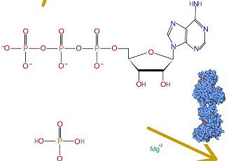 Figura p1-02. Resumen del paso 1 de la glucólisis, donde a demás de una proteína se observa la necesidad de emplear un metal iónico, el magnesio.