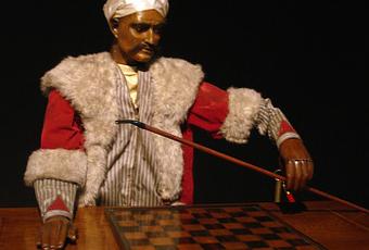 La solución, si es que la había, estaba mucho más allá de lo que su limitada ciencia e ingenio podían resolver. Entonces, por casualidad, leyó en un libro la historia del ajedrecista turco del siglo XVIII y con esto en mente, dio forma a su idea. Luego de realizar las adaptaciones necesarias, publicó el anuncio: “Se requiere hombre de hasta un metro con veinte centímetros de estatura, buena paga, informes…” En corto tiempo, el colaborador elegido, un sujeto de aspecto vivaz, recibió la propuesta con entusiasmo y asombro. No tardó en aprender el funcionamiento de los controles y habituarse a su uso. Cómodamente instalado en un diminuto nicho, permanecía largo tiempo aislado del exterior, con sus necesidades básicas cubiertas por un depósito de agua, otro de comida, y un procesador químico de desperdicios sobre el cual iba convenientemente sentado. Al terminar cada jornada, salía del aparato con la ayuda de su jefe para descansar y repetir la operación, temprano, al día siguiente. El oscuro armario metálico funcionaba en un escogido rincón del mercado, apoyado en una puerta.
