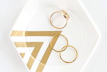 Tan solo necesitamos un molde en forma de hexágono, dejamos secar y aplicamos con cinta de carrocero las líneas para pintar en dorado, cobre, gris, rosa... o el color que queráis una vez seca la pintura ya tenemos nuestro joyero terminado y el resultado no puede ser más espectacular.