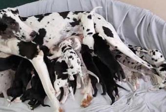 El tamaño promedio de la Reproducción Del Perro Gran Danés aproximadamente es de 8 cachorros.