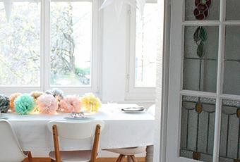 Se trata de dos mesas para decorar de forma original y sobre todo FÁCIL con pompones de seda o farolillos, la primera con algo más de color y la segunda en tonos mas neutros pero ambas tienen algo en común UNAS MESAS MUY MUY SENCILLAS donde reina la elegancia del menos es mas y que seguro que podemos adaptar a todas nuestras casas.