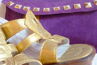 Parece que en mis últimas entradas mucho se remite a los retazos de cuero que me regaló mi amiga Angi.Entre ellos, tenía éste,color berenjena divino y se me ocurrió que combinaba genial con el dorado de las nuevas/viejas sandalias doradas.