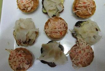 TARTALETAS CON ATÚN Y PALITOS SURIMI ,Y TAPAS DE BACALAO AHUMADO