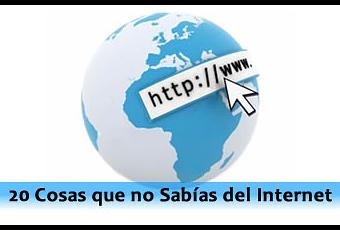 5-El formato RSS nace 1997.6-El primer tweet de Google fue “I’m 01100110 01100101 01100101 01101100 01101001 01101110 01100111 00100000 01101100 01110101 01100011 01101011 01111001 00001010.” que significa “I’m feeling lucky”.7-el dominio 466453.com está registrado por Google, ya que son las teclas del móvil que hay que marcar para escribir google.com8-Mucho antes de la llegada de Google o Bing, ya existían los motores de búsqueda, y el primero fue WebCrawler en 1994.9-La palabra Google viene de gúgol (10 elevado a la 100), como una metáfora de la gran cantidad de páginas que se proponían indexar los creadores.10-Actualmente Google cuenta con 8.168.000.000 páginas indexadas.11-En internet hay webs para todo, incluso hay la denominada “Web mas molesta“.12-También podemos encontrar el boton mas clikeado de la historia, que a día de hoy acumula más de 2.000 millones y medio de clicks!13-Cada día se envían 247 millones de emails, el 81% son spam.14-El primer mensaje de spam fue enviado en 1978 por el responsable de marketing de Digital Equipment Corporation en Arpanet.15-El primer mensaje que circuló por la red fue LOG. Se pretendía escribir LOGIN, pero la red falló antes de acabar.16-La primera @ se usó en 1971 por Ray Tomlinson para separar un nombre del lugar donde estaba.17-300 millones de personas visitan YouTube una vez al mes como mínimo.18-En 1993 se creó el primer navegador, llamado Mosaic.19-1/3 de las búsquedas en internet están relacionadas con pornografía y el 80% de las imágenes en internet son de desnudos.20-El 44% de contenidos compartidos proviene de Facebook y el 29% de Twitter.