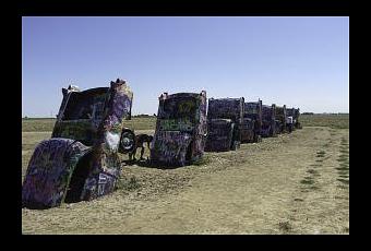 Cadillac Ranch es una obra de arte urbano que fue encargada por el mandatario local Stanley Marsh a un grupo de artistas que se hacían llamar "the Ant Farm" (la granja de hormigas). Este grupo fue fundado por dos arquitectos en los años 60 y en él participaban numerosos artistas.