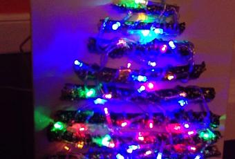 Y ahora vamos enrollando las luces rama a rama y pegando estas al lienzo.