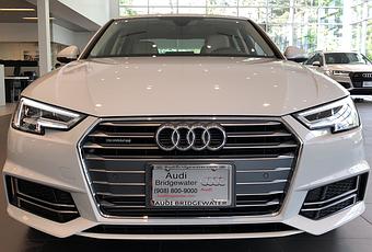Front End View Of An Ibis White 2018 Audi A4 With Grill Logo And