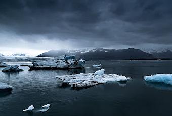 Cuando los glaciares alcanzan el mar, eventualmente grandes masas de hielo se desprenden en un fenómeno conocido como desprendimiento glaciar o calvin. Los icebergs se desplazan lentamente con las corrientes oceánicas pero gran parte de su masa se encuentra bajo el agua, de modo que sólo sobresale una parte en la superficie.