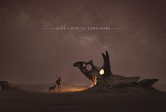 Uno de sus últimos trabajos nos ha llamado la atención, ya que recrea una escena post-apocalíptica en la que sobresale el cráneo fósil de un triceratops. En la pieza ha utilizado diferentes materiales y técnicas, con un escenario de madera maciza y un escaneado en 3D de un cráneo real del dinosaurio ceratópsido. Posteriormente en su estudio, Hernandez llevó a cabo varios efectos de cámara con los que conseguir la niebla o la luz que sale del cráneo. El toque final se hizo en Photoshop, agregando algunas montañas distantes y el cielo nocturno.