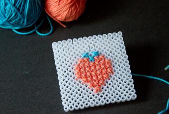 Hemos elegido el motivo de un corazón, pero puedes usar cualquier patrón de punto de cruz o hacer el tuyo propio.