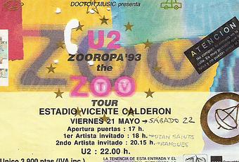Pero es que en 1993 Bono era un flipao. Y molaba porque tenía una banda importante, influyente, que marcaba tendencia. U 2 era lo puto más en 1993. Su mejor época. Y resulta, queridos niños, que yo pasaba por allí a mis 14 primaveras de manera que, un día cualquiera, comiendo en la cocina en la que este domingo hemos estado con los abuelos charloteando a mis 44, se me ocurrió decir "pues yo quiero ir a U2". En estos tiempos de turbocapitalismo trucado parece imposible, pero nos lo pensamos un poco y decidimos que sí. Bueno, no yo. Lo decidió mi hermano mayor y, sencillamente, me llevó. 3.900 pesetas y un número que, como el de preso de Nelson Mandela, me representa: 15.396.