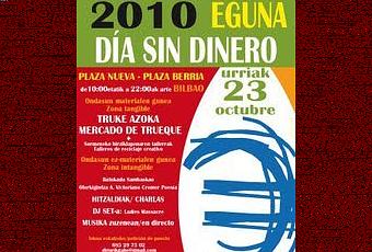 Pues bien, el próximo sábado día 23 de octubre vuelven a organizar el "2º día sin dinero". Donde lo importante no es cuánto dinero tienes en el bolsillo, sino el intercambio, la creatividad, la espontaneidad y la habilidad de relacionarse olvidándose del dinero.