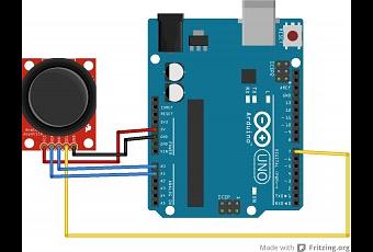 No hay mucho que explicar aquí, los pines vienen marcados así que el de vcc va a 5V, tierra a GND, la patilla sw va al pin digital y las encargadas de los valores del eje X y eje Y van a dos pines analógicos, tal que así: