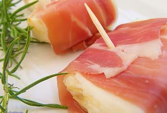 Melón con jamón, vía Bluejellybeans.También podemos añadir a esta ecuación un poco de mozzarella para hace un pinchito de lo más resultón. Si el melón además es más dulce, como el cantaloup, será aún más sorprendente.