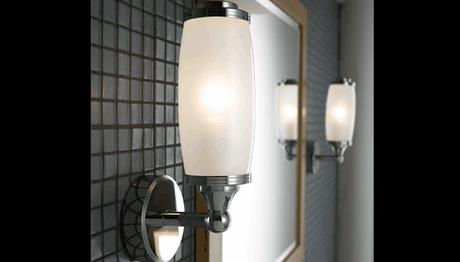 ¿No se te había ocurrido tal vez usar tu lampara de mesita de noche?, si ya quieres una nueva en tu habitacion por que no usar esta para el baño, colócala en la repisa del lavabo, sera algo distinto y único, te servirá como para dejarla prendidas por las noches cuando tienes visitas. O simplemente colocar la lampara que sea de tu gusto que combine con todo el lugar.
