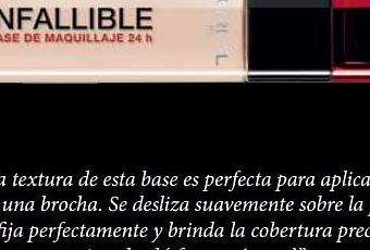El secreto profesional se encuentra en la aplicación; lo primero que debes hacer es elegir el tono correcto que debe ser el más cercano a tu color natural de piel. El tip Infallible de Karim Rahman, makeup artist de L´Oréal Paris: “Una base siempre debe probarse en el rostro. La mejor técnica es colocar una pequeña cantidad en la mejilla. Si parece ser más clara o más oscura que la piel, no es el tono adecuado. Si no logras verlo, es el color ideal. Si no puedes decidir entre dos tonos, eligue el más ligero”.