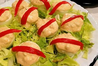 HUEVOS RELLENOS CON SURIMI DE LANGOSTA