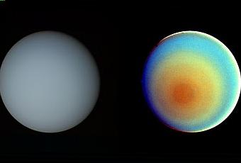 Los científicos también determinaron una temperatura promedio de Urano de 59 Kelvin (-214º C), antes del encuentro, pero la distribución de la temperatura fue una sorpresa. Voyager 2 mostró que no había transporte de calor desde un polo al otro en la atmósfera, pero ésta mantenía la misma temperatura en ambos polos, a pesar de que el Sol había iluminado directamente durante décadas un polo sí y el otro no.
