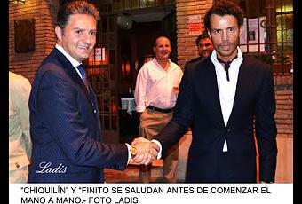 Si en aquellas fechas pusieron la plaza de bote en bote, hoy ha sucedido lo mismo. No cabía un alfiler en la sede social de la entidad organizadora cuando Alfonso Téllez dio la bienvenida en nombre de todos los socios. Enseguida, el moderador del mano a mano, Víctor Molino les preguntó a ambos si había existido una auténtica guerra entre los dos. "Finito, como mas veterano en el cartel tomó la palabra primero "Nunca ha habido guerra, solamente es que la afición se dividió entre los dos.Eran partidarios muy apasionados, y esa pasión se sentía en toda la ciudad. Por su parte "Chiquilín" adujo: Guerra no, era pique, pero de ahí no se pasaba. Nos saludabamos en la puerta de cuadrillas pero cuando salía el toro cada uno ibamos a lo nuestro.