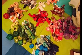 Lo de los hilos al final organicé un poco los que tenía por casa (que eran unos cuantos) en diferentes cajas, por colores. Y elegí los que mas se parecían a los que pide el gráfico. Tenía tanto anchor como dmc. Los anchor tengo que decir que me los regaló una vecina y me dijo que eran muy muy antiguos.