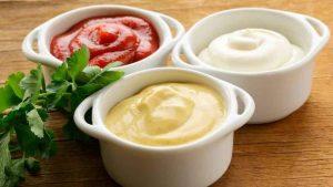 La mostaza y la mayonesa, los aderezos picantes, las salsa de tomate, le hacen al guerra a la piel y aumentan la producción de estos hoyuelos, puedes preparar tus propios aderezos caseros usando las hierbas naturales y los condimentos, que puedes reducir poco a poco la ingesta de estos productos, específicamente si lo compras en el mercado.