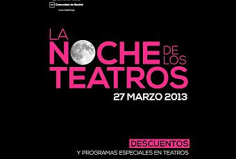 Los grandes protagonistas de La Noche de los Teatros 2013 son los 68 espacios escénicos, entre teatros y centros culturales, así como locales de música en directo, afiliados a La Noche en Vivo, que ofrecerán descuentos de hasta un 40% y una programación marcada por la diversidad. La oferta de espectáculos se extenderá por Madrid y también llegará a La Cabrera (al Centro Comarcal de Humanidades Cardenal Gonzaga – Sierra Norte). Además, gracias a la colaboración de Entradas.com y El Corte Inglés, los madrileños tendrán la posibilidad de conseguir un año de teatro gratuito (dos entradas de teatro al mes durante todo un año) entrando en las páginas web de estas dos entidades:www.entradas.com/la-noche-de-los-teatros/ywww.elcorteingles.es/entradas. El concurso se inicia el jueves 15 de marzo yterminará el 26 de marzo.