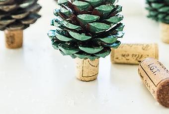 También podemos colgar mini árboles y utilizar los corchos reciclados a modo de tiesto y podemos hacer desde divertidos centros de mesa decoraciones pequeñitas en miniatura muy originales para ellos solo hay que cortar una pequeña ramita del árbol de Navidad y plantarlo como si se tratara de una planta.