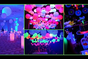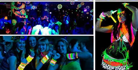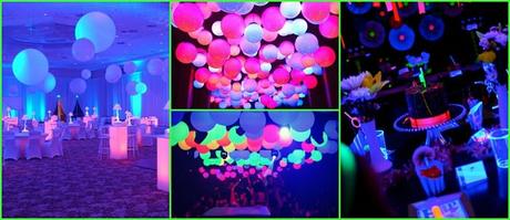 Si quieres empezar a planificar todo lo que compete a una fiesta de esta magnitud, estoy segura que te ayudaran mucho estos consejos. Un punto importante es que este estilo de decoración se aprecia mucho mejor en la oscuridad, por lo que deberías ir pensando en el lugar en donde se efectuara tal celebración, tiene que ser cerrado completamente, para que tanto los accesorios, la vestimenta de los invitados, la decoración y demás cosas que coloques brillen en todo momento.