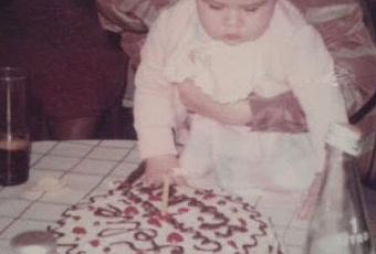 Aquí estoy con mi tia Mari, y esta es la tarta que me hace mi mami cada año, esta la hizo mi abuela :)