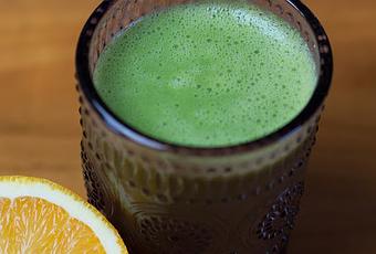 Espinacas + frambuesas + arándanos + agua1 vaso de agua1 puñado de espinacas1 puñado de frambuesas y arándanos1 pizca de jengibre fresco