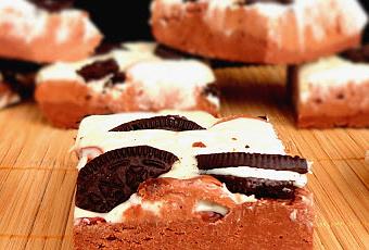 Por último trocearemos las galletas con la mano y las repartiremos por el dulce de tres chocolates. Presionamos un poco con las manos para que las galletas penetren bien y lo llevamos a la nevera al menos tres horas, hasta que solidifique bien.