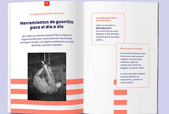 Se trata de una guía muy fácil de leer en la que las 3 autoras cuentan su experiencia y sus propias herramientas de lucha feminista. Así, pretenden acabar con los viejos estereotipos en los anuncios (un señor no pierde su virilidad por cambiar un pañal y no pasa nada porque la jefa de la empresa sea una chica) y que se use un lenguaje más incluyente en el que todo el mundo se encuentre representado.