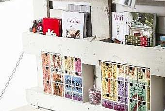 .VíaEste práctico (y barato) escritorio es sencillísimo de realizar. Una vez hayamos conseguido 2 palets, hemos de pintarlos del color que más nos guste y collarlos a la pared uno debajo del otro. Con un trozo de madera, unas bisagras y dos cadenas, realizamos la mesa que se podrá cerrar añadiéndole un pequeño enganche para poderla subir cuando no se esté utilizando. Como veis, se trata de un "escritorio" con bastante espacio para guardar que le dará un aire muy moderno al cuarto de vuestro hijo.