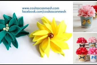 12.- En el centro de la flor, podemos pegar unas perlitas o botones, te invito a ver los otros tutoriales de flores hermosas en fieltro.
