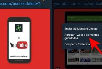 - Te saldrán varias opciones para compartir, y en ellas pulsa sobre Agregar Tweet a Elementos guardados (2) para guardarlo.