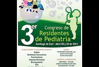 Los invito al 3er congreso de los residentes de pediatría de la Universidad CES en asocio con la fundación Valle de Lili. Se realizara en Cali el 28 y 29 de abril y es gratuito para todos los residentes de pediatría del país. Para encontrar más información hagan click sobre el afiche adjunto.