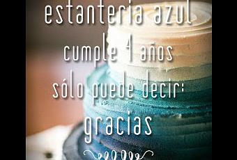Realmente no siento que hayan pasado cuatro años desde que decidí crear Estantería Azul. Cuatro años parecen mucho tiempo pero se me han pasado volando; me lo creo porque miro hacia atrás y veo todo lo que el blog me ha aportado, todo lo que he aprendido, los libros maravillosos que he descubierto en vuestros blogs, las personas que he conocido y los momentos tan increíbles que he pasado. Sé que nada de eso hubiera sido posible si aquel 16 de agosto no me hubiera plantado delante de Blogger y hubiera escrito las palabras Estantería Azul.