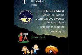 La Agrupación Telescoperos Ricardo González y el Observatorio Turístico y Educativo Roan Jasé, tienen el agrado de invitarlos al 4° Campamento Científico Astronómico Telescoperos TRG 2018, a realizarse entre los días 06 al 08 de abril del 2018, en las dependencias del Observatorio (Camino al Volcán 29238, El Melocotón, San José de Maipo).