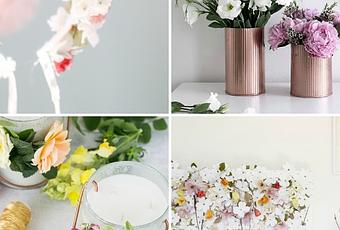 Estos cuatro diy tienen un elemento en común....las flores. Para realizar cada uno de ellos puedes recoger flores del campo o comprar flores preservadas.