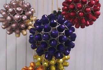 Cuándo llega la Navidad muchas veces queremos hacer adornos navideños originales y ala vez también es una pena gastar mucho dinero en un objeto de decoración que solo va a estar presente unos pocos días durante el año muchas veces nos cansamos de estos adornos de un año para el otro y queremos seguir consumiendo el año siguiente nuevos productos de decoración el fomento del consumo sin desenfreno contrasta totalmente con el tipo de manualidades que te propongo aquí quiero demostrarte que se pueden conseguir un montón de manualidades muy originales y bonitas utilizando cosas tan sencillas y fáciles de encontrar como las podemos hacer un montón de decoraciones navideñas como por ejemplo estas bolas de árbol de Navidad y tan solo necesitaremos como elemento base unas cápsulas de café y un poco de originalidad para poder conseguir un resultado muy bonito.
