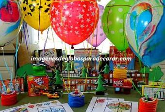 Estos son unos lindos arreglos en los cuales los globos de distintos colores se han usado para hacer un globo aerostático, estos arreglos se usan muchas veces como sorpresas o para ambientar la mesa de la fiesta, aquí veras algunas opciones de decoracion facil para cumpleaños infantiles.