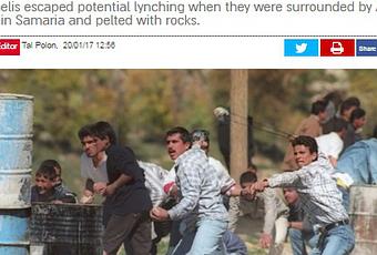 Momento en que fueron rodeados por una multitud de palestinos que los atacaron apedreando su vehículo, lo que obligó a los israelíes a defenderse usando sus armas de fuego.