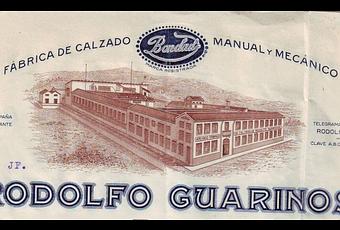 Publicado el 01 julio 2018 por TirapieLa gran fábrica de Rodolfo Guarinos Vera data desde 1902, si bien años antes comenzaría una más modesta fábrica a nombre del padre y fundador Juan José Guarinos Vidal. Estaba construida en el final de la actual calle Purísima, en la zona conocida como "Portal del Ángel" con fachada a la calle Gonzalo Sempere. Tenía una superficie superior a los 4.000 m2, formando un complejo en el que había hasta 12 naves industriales que albergaban las diferentes secciones; también una serie de edificaciones menores. Fabricaba zapatos de todas las clases, con producciones que superarían los 1000 pares diarios de calzado, ocupando a más de 800 personas en algunas épocas del año. La marca de fábrica que más fama cosechó era "Bondad". En la calle Legionarios se instaló una pequeña fábrica de calzados a nombre de Avelino Martínez Pérez, fabricaba una corta producción de zapatos de mujer y tenía como logotipo las iniciales de su nombre "A.M.P." dentro de un ovoide punteado. Hasta los primeros años en que se crearon en Elda las Ferias Internacionales de Calzado, hubo una marca de fábrica llamada "La Gata" con un logotipo que dibujaba una gata negra sobre unos tejados a la luz de una luna creciente, su eslogan rezaba: "suave como la gata", para dar una idea de la calidad y finura de sus pieles con los que Guillermo Ortuño Esteban fabricaba zapatos de mujer. Luís Bel Garrigós fue el fundador de una saga de fabricantes de calzado que todavía tienen continuidad Elda de la mano de alguno de sus nietos. La empresa inició su andadura en el año 1930 con un primer taller que empleaba a 8 personas, en la calle Dos de Mayo, casi enfrente de la fábrica de Hormas Micó; allí llegaría a fabricar alrededor de 100 pares al día de zapato de chicarro y los vendía en los pueblosc ercanos. El taller vendía cada día más pares de zapatos y llegó a incrementar su plantilla hasta los 14 operarios y ampliar la casa taller hasta los 120 m2, para alcanzar los 400 pares al día de un zapato de niño al que incorporó una patente de invención, se trataba de un tipo de calzado con una especie de plantilla ortopédica, esto hizo que sus ventas se disparasen. Fabricó calzado vulcanizado con la marca "Lube", en uno de los logotipos había un niño que sostenía un cartel con el nombre de la marca y otro logo eran un dragón bicéfalo sosteniendo un zapato y la leyenda "Vulcanizados Lube". Pasado un tiempo alternaba los zapatos de niño con los de mujer de calidad media y con este tipo de fabricados fue superando la calidad hasta un zapato de mujer de gama alta.
