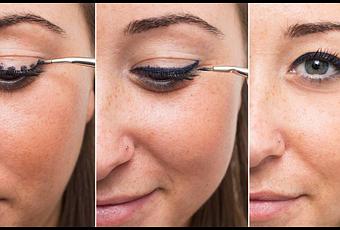 Usa un delineador en gel y un pincel biselado para delinear primero el rabillo o cola y rellenarlo de manera descendente traza la línea de las pestañas del párpado móvil sin llegar al lagrimal.