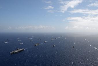 Cuarenta barcos y submarinos de 13 naciones operan en formación cerrada durante la Cuenca del Pacífico 2016.RIMPAC de este año, el ejercicio marítimo internacional más importante del mundo, consiste en veintiséis países socios, con más de 40 barcos y submarinos, más de 200 aviones y 25.000 capacitación del personal en y alrededor del California islas de Hawai y Sur 30 de junio al 4 de agosto de . RIMPAC 2016 es el ejercicio 25 de la serie que comenzó en 1971.