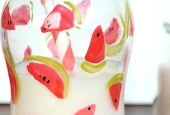 Una de las primeras cosas en las que nuestros invitados se van a fijar y que podemos decorar de una fiesta infantil haciendo manualidades son las bebidas, podemos hacer envases de bebidas muy originales y creativos decorando los según lo que más nos guste por ejemplo si nuestro hijo es un auténtico fan de los dinosaurios podemos pintar siluetas de estos mismos y podemos jugar con colores para hacer divertidos personajes estampados en vasos de plástico para eso necesitaremos hacer primero un molde si no queremos equivocarnos recordando un poco de papel y luego después pintarlo con pintura acrílica también podemos hacerlo con rotuladores permanentes y el resultado es de lo más divertido otra opción es que si nos gusta por ejemplo las frutas y queremos hacer alguna decoración más veraniega exactamente el mismo método utilizar rotuladores y pinturas para pintar botes en este caso de cristal y servir ahí las bebidas.
